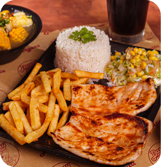 Contiene ensalada, granos, papas a la francesa, arroz, sopa y bebida.